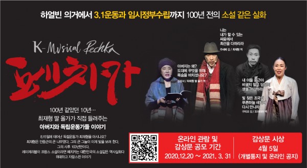 뮤지컬 페치카 온라인 영상관람 및 감상문 공모전(3월 31일까지)